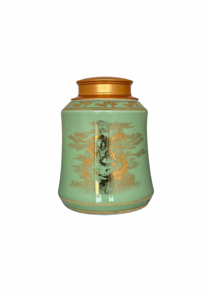 Review Hũ Trà Sứ trắng 18s2- Hoạ Tiết Cầu Vàng Vàng Kim