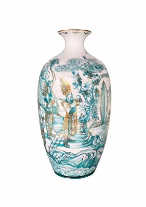 Trong văn hóa truyền thống Việt, câu chuyện công chúa Tiên Dung – Ngọc Hoa bên giếng Ngọc dưới thời Hùng Vương mang nhiều giá trị tâm linh, nhắc nhở “uống nước nhớ nguồn” và cầu duyên linh nghiệm. Hòa quyện cùng chất liệu gốm sứ men trắng cao cấp và nét vẽ vàng kim thủ công, Bình Lộc họa tiết Giếng Ngọc Tiên Cô không chỉ là vật phẩm trang trí mà còn là biểu tượng mang nét đẹp lịch sử vùng đất Phú Thọ.